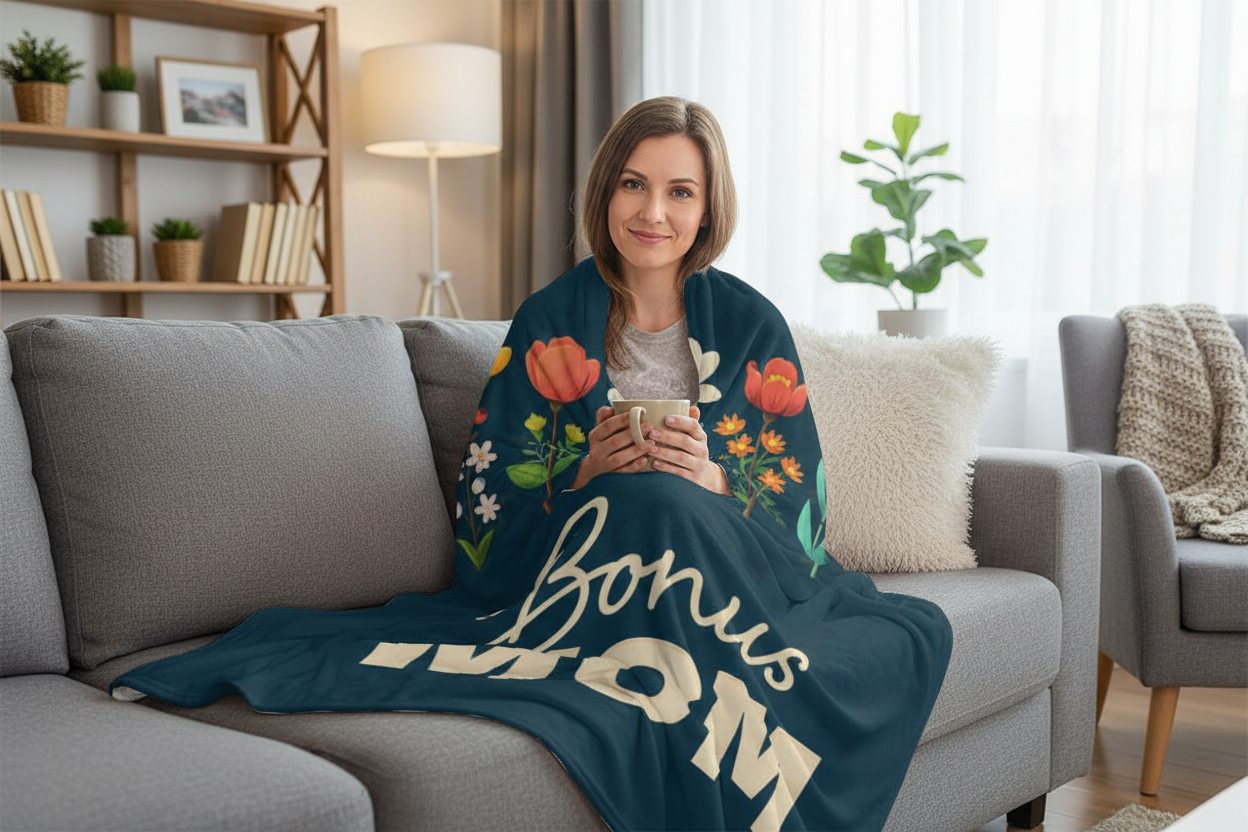 Wrap your bonus mom in the embrace of this beautiful Jersey Fleece Blanket. This isn't just a blanket—it's a heartfelt tribute to the woman who chose to love you, a cozy companion for chilly nights and lazy Sundays that says "thank you for being my bonus mom."